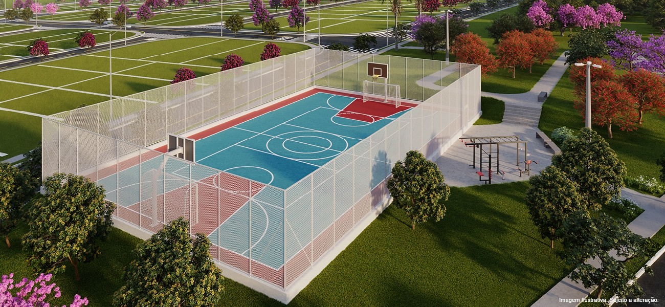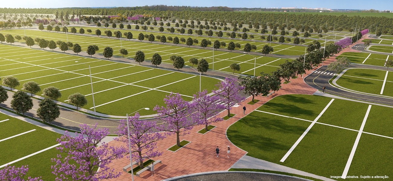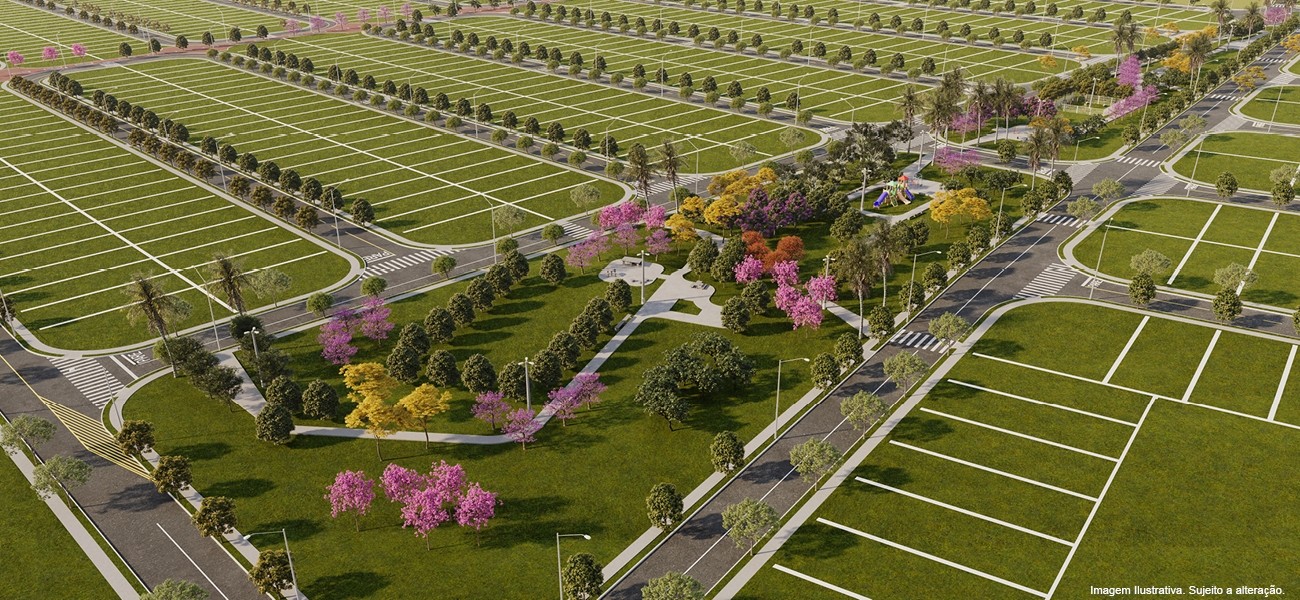 Loteamento aberto com infraestrutura completa de lazer e alamedas integradas que privilegiam a caminhabilidade e melhoram a qualidade de vida dos moradores.